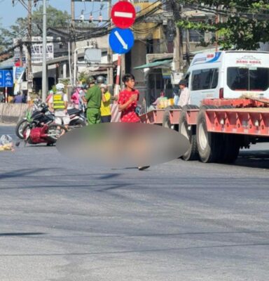 VD – TNGT nghiemtrong giữa xe container và xe máy trên quốc lộ 1A, 1 người t4 tại chỗ