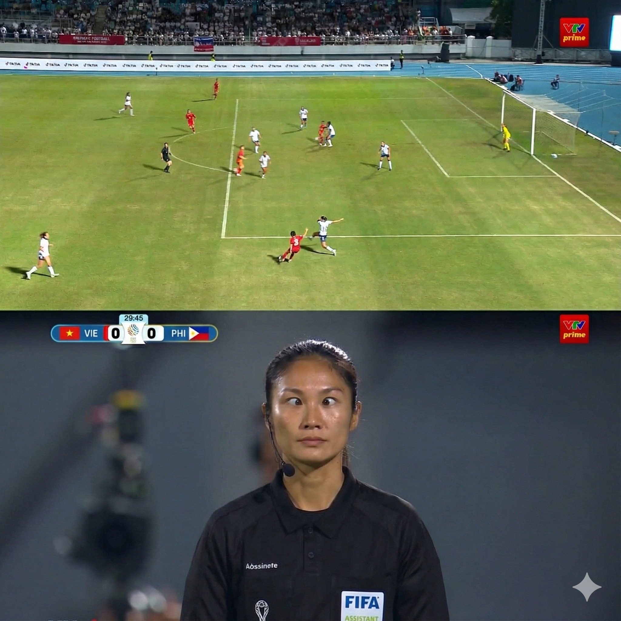 Trọng tài biên người Lào Phutsavan Chanthavong là người có kinh nghiệm làm việc lâu năm. Đáng tiếc, bà lại mắc sai lầm nghiêm trọng, khiến tuyển nữ Việt Nam mất oan bàn thắng trước Philippines.